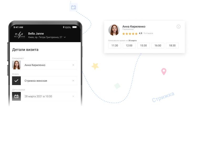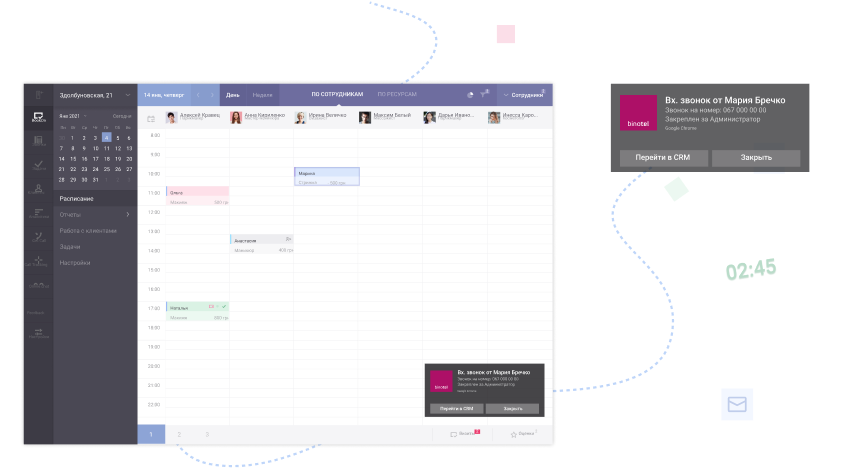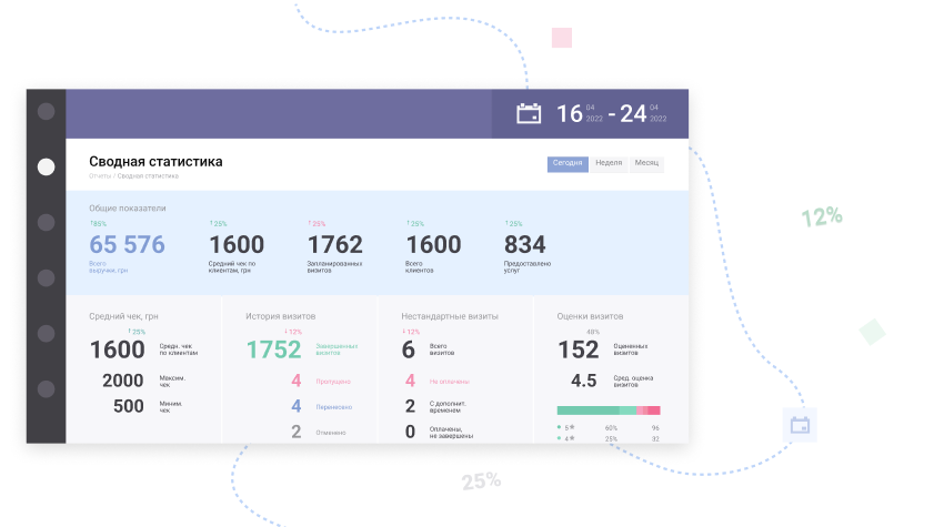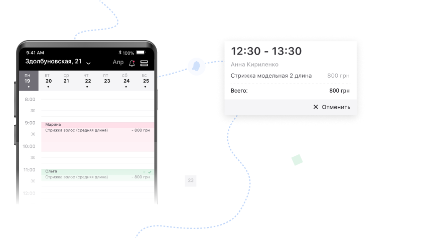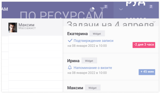 Контроль и управление записью визитов. Нет накладок в расписании, вы не теряете клиентов.