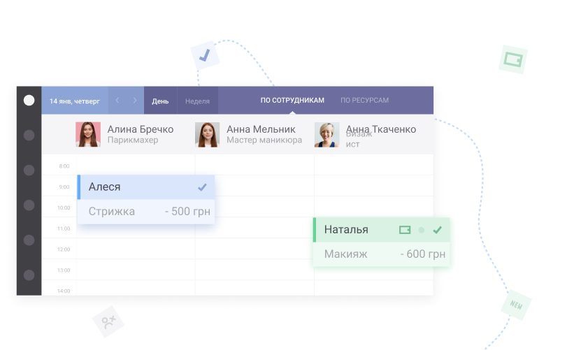 Контроль и управление записью посещений. Нет накладок в расписании, вы не теряете клиентов.