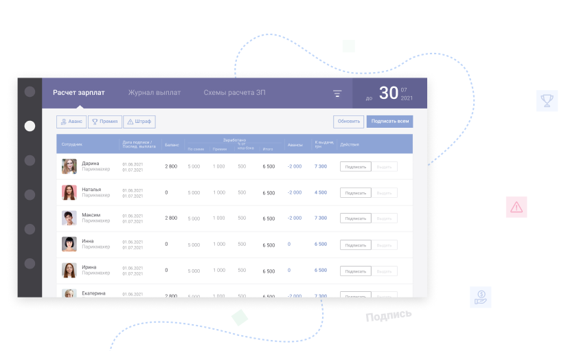 Данные о заработке салона: по сотрудникам, по клиентам, по дням и за выбранный период в один клик